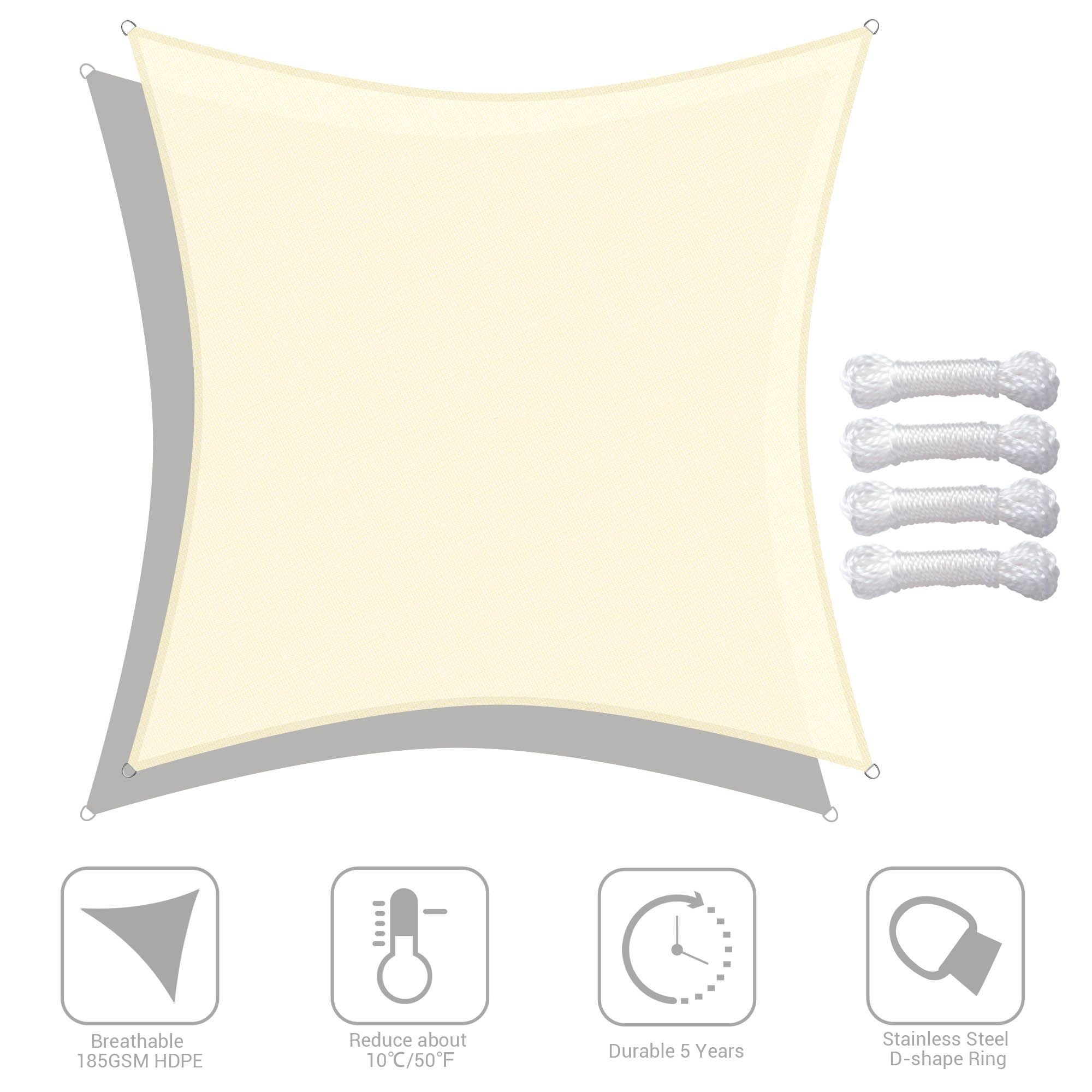 - HDPE Reduces Heat Transfer - Made by 100% brand new 185GSM HDPE material to efficiently reduce the temperature under sail about 50°F (10°C); excellent breathability to allow breeze to pass through; offers a cool and airy shelter on hot days