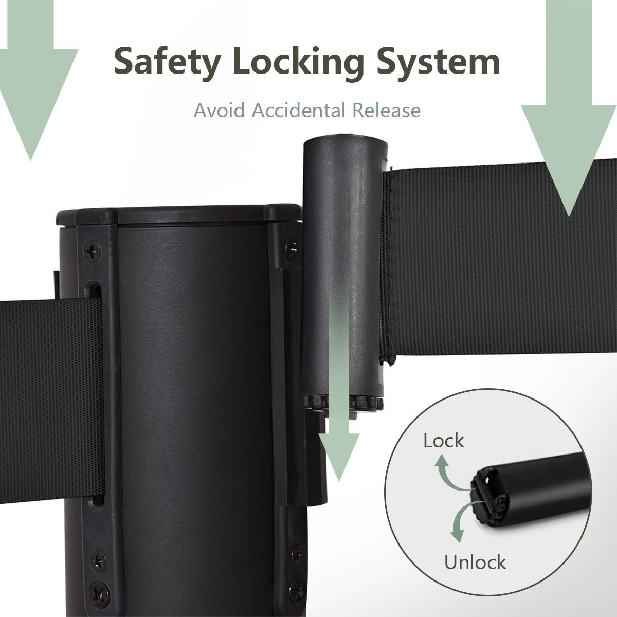 The premium stanchion set is available with 6 stainless steel stanchion posts together with retractable belts.   The barrier belts are effective in organizing crowds queues and designating an enclosed area for various purposes. It’s an ideal solution for systemizing crowds in various ceremonies fashion shows airports ticket counters and other crowded places. The extension is made easier by sensitive telescopic head with wear-resistant retractable belts and 4-way adaptor on the top of each steel pole. The barrier belts are designed to retract to avoid any accidental release. Stainless steel and heavy-duty base give these poles a firm standing on the ground against winds. The rubber floor protectors on the base prevent unwanted scuffing noise and floor damages. It’s an essential product to avoid any unwanted and complicated congestion at crowded places.   Don’t wait if you’ve been wondering on ideas to organize crowds and queues from a long time. Get one for optimal solution!   6pcs stanchion poles with retractable belts equal 3 sets of crowd control barriers Sensitive telescopic head with wear-resistant retractable belts 4-way adaptor at the top of each post for easy extension Retractable locking belt to prevent injuries from accidental release Sturdy and durable black matte painted steel stanchion poles anti-rust not easy to scratch Solid base filling with cement for extra stability not easy to swing in the wind Rubber floor protectors protect the floor from scuffing and reduce the noise when moving A maximum span of 6.5 feet (78’’) long belt retractable between two stanchions for crowd control Great for Crowd Control at Grand openings Theaters Concert Venues & Trade Shows etc. Easy for setting up simply retract belts and unscrew them for easy storage