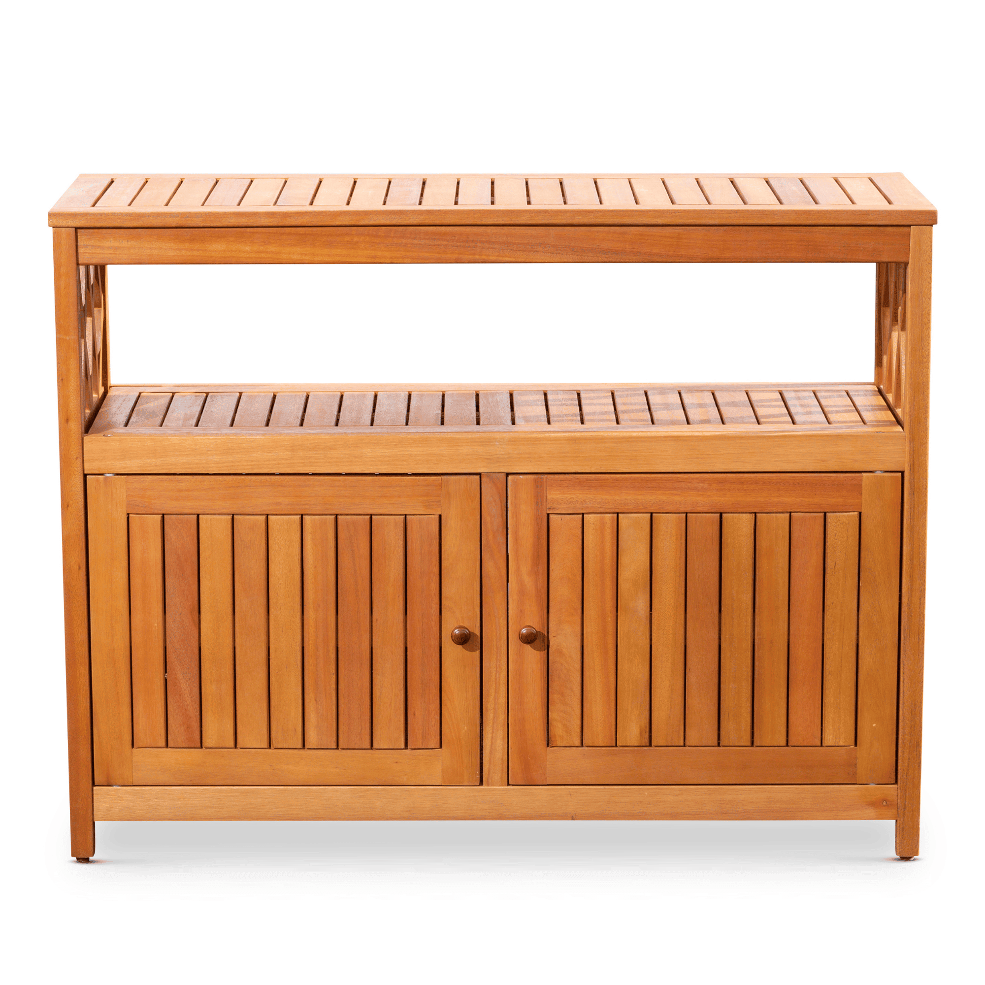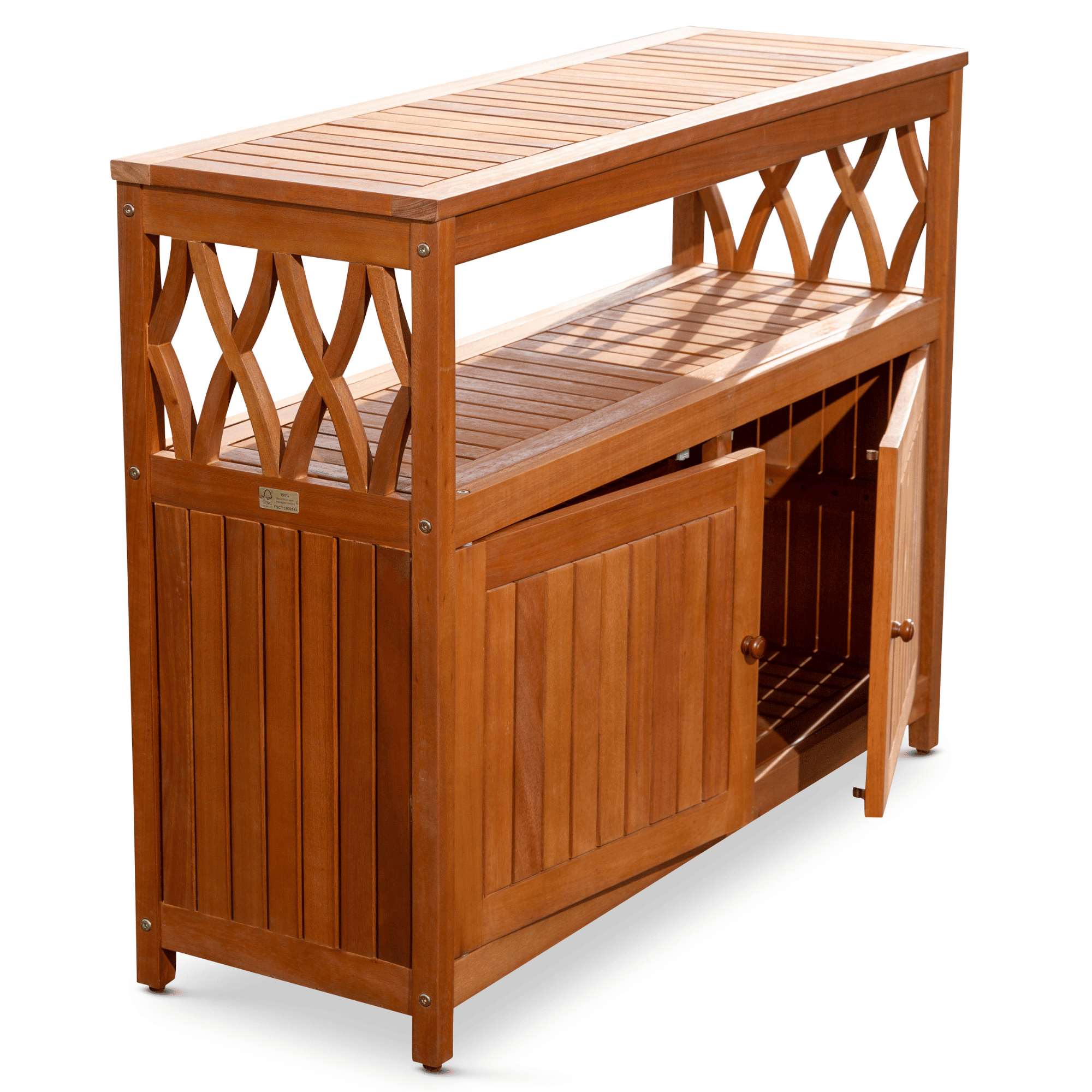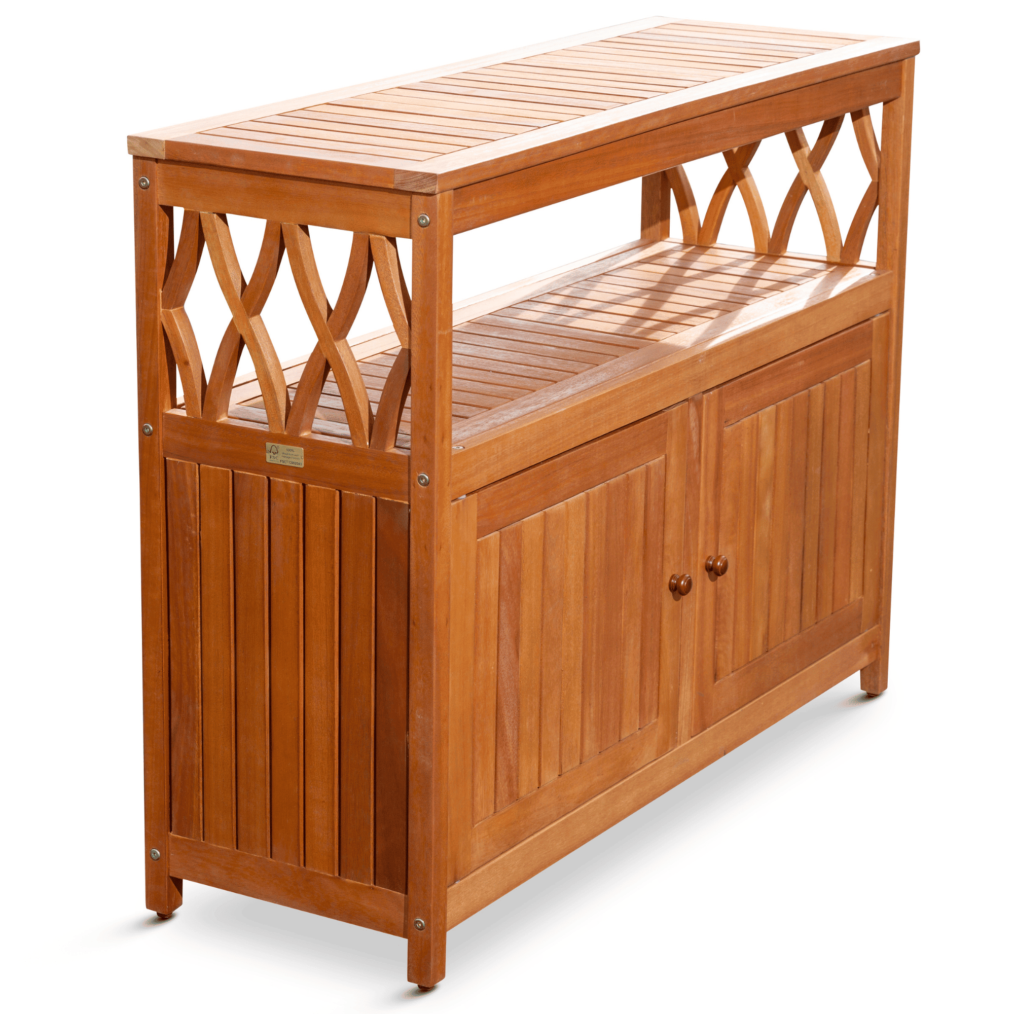 STYLISH DESIGN: Features a tabletop surface with an open middle shelf and additional storage behind cabinet doors. Coordinate with our Longs Peak Eucalyptus collection to create the perfect outdoor living space.