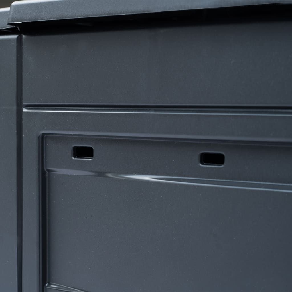 The compost bin is made of plastic which makes it UV and weather resistant. The unit has a lightweight body as well as a neat appearance. It has a split lid for optimal irrigation and ventilation. Thanks to ventilation holes in side part, this waste box can exquisitely achieve optimal composting. This square composter will come in very handy when recycling, and meanwhile it will blend naturally into any garden.