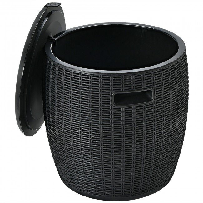 The lid comes with a buckle for convenient use and is fixed tightly by the hookMultiple uses as a patio side table; an ice bucket; a stool and a storage box9.5 gal capacity to provide various drinks and snacks for a group of peopleTwo handles on each side are convenient for transportationDrainage hole with a plug is designed for easy cleaning and emptyingAll-weather ice bucket with imitation rattan style is ideal for multiple placesSuitable for pool party; barbecue; camping; family gathering; etcInside container also is convenient to clean with damp cloth