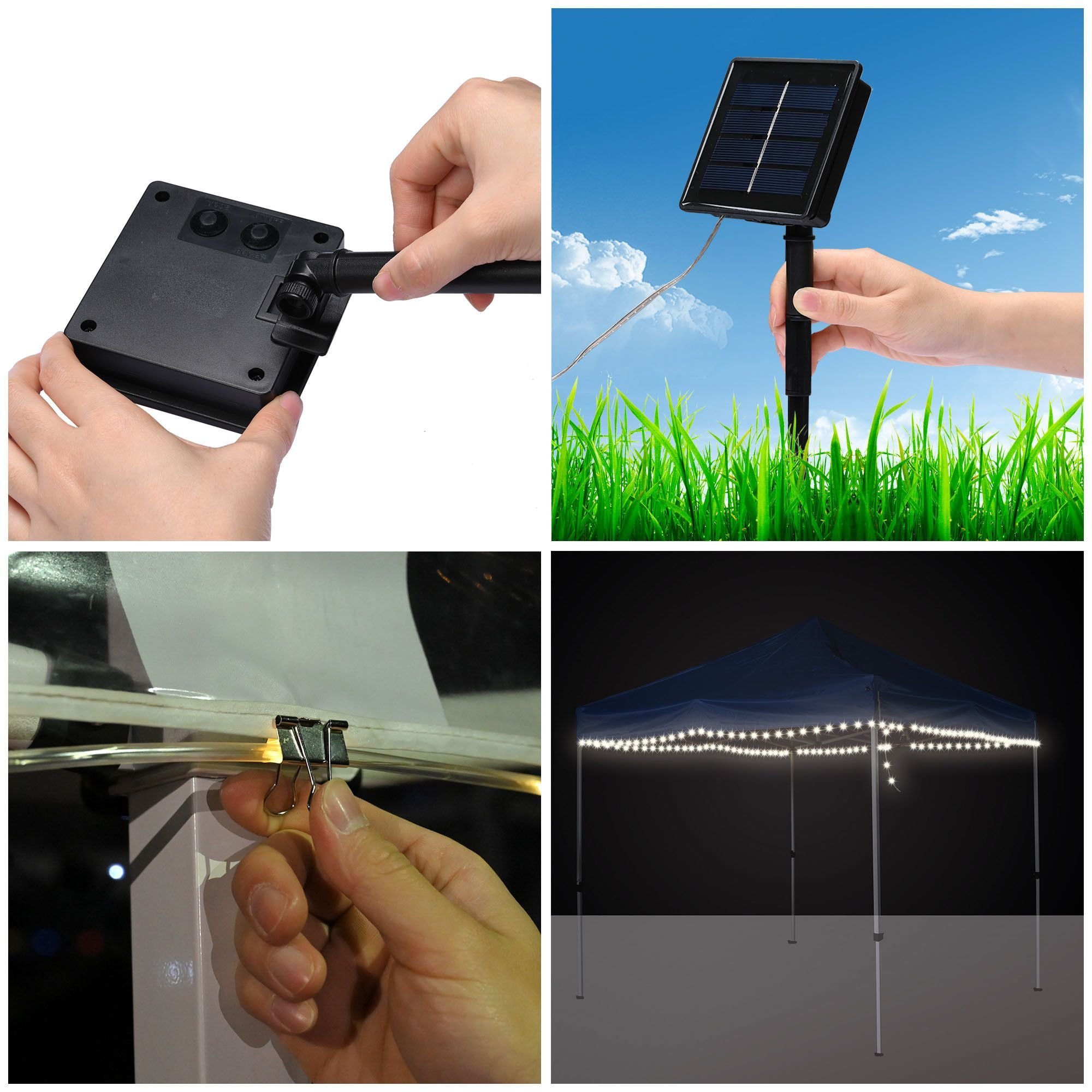 - Wide Application - 40 ft Solar Powered LED String Light fits up to 10x10 ft canopies, 120 RGB LED fairy lights to boost ambience fantastically, setting the mood for memorable night with friends & family over barbeque, wedding, tailgate party, yard, patio, beach, also perfect decoration for bicycle, Christmas tree, etc.