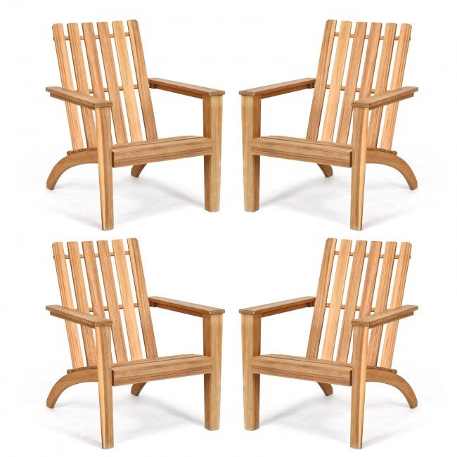 The ergonomic backrest; widened armrests and curved seat make this patio chair comfortable enough for long time sitting. Furthermore; solid acacia wood comes with strong loading capacity up to 350 lbs so that it can be sat by people with different weights. What’s more; this Adirondack chair with simple yet elegant design allows you to put it in various places; such as patio; deck; backyard and garden; etc.