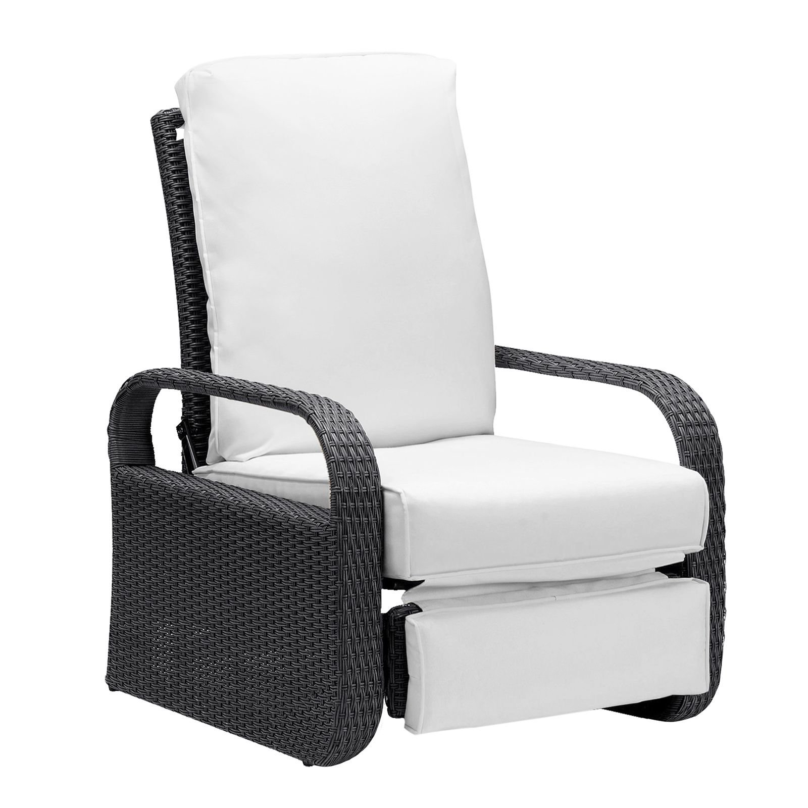 1. Ultra Comfortable & Attractive: The wicker rattan adjustable recliner is super comfortable; have 3 different positions just use your hand to push the armrest 90/120/160 degrees (pls check the picture). Great for chairs; recliners; and Loungers. 20.9 inches for seat width; 24.9 inches for seat depth; and 5.1" thickness cushions bring supper comfortable for sitting and even falling asleep.2. Gorgeous Hand Woven: The outdoor patio wicker recliner use high-quality UV-Resistant resin wicker; excellent tight weave; and clean bottom weave making the wicker chair look beautiful for your Garden and patio; providing great protection against fading; and cracking; and the weather; stylish surface marches other furniture perfectly. 3. 3. Sturdy & Durable Aluminum Frame: The patio recliner lounge is made from aluminum which is more lightweight and durable than other metals; with the same color power-coated prevents the aluminum frame from rusting and is more beautiful. Fashion style perfect for any home decor.4. Washable & Water/UV Resistant Cushions: Our recliner cushions are made from 325g/m² fabric and high-density foam; the whole cushion is 5.1" thick; very comfortable; and cushioned with a zipper; easy to replace and wash. (TIPS: if you need to replace the cushion cover; pls freely contact us!!)5. Easy to Assemble: Our outdoor recliner chair is assemble required; and it is easy to assemble; takes less than half an hour you can assemble it and enjoy your warm afternoon with a good book! (TIPS: please contact us if you need the video of assembled recliner chair.)