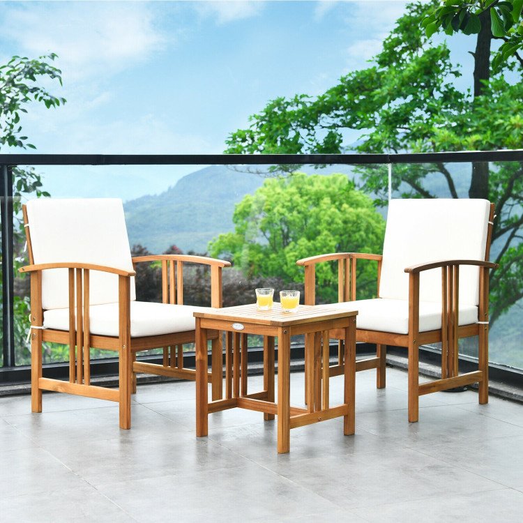 1.Solid Wood Frame for Durable Use: Made of hard and premium acacia wood, the frame of 3-piece furniture set is sturdy and not easy to crack or deform. With exquisite craftsmanship and anti-rust accessories, the weight capacity of set is improved and will provide long time service.
