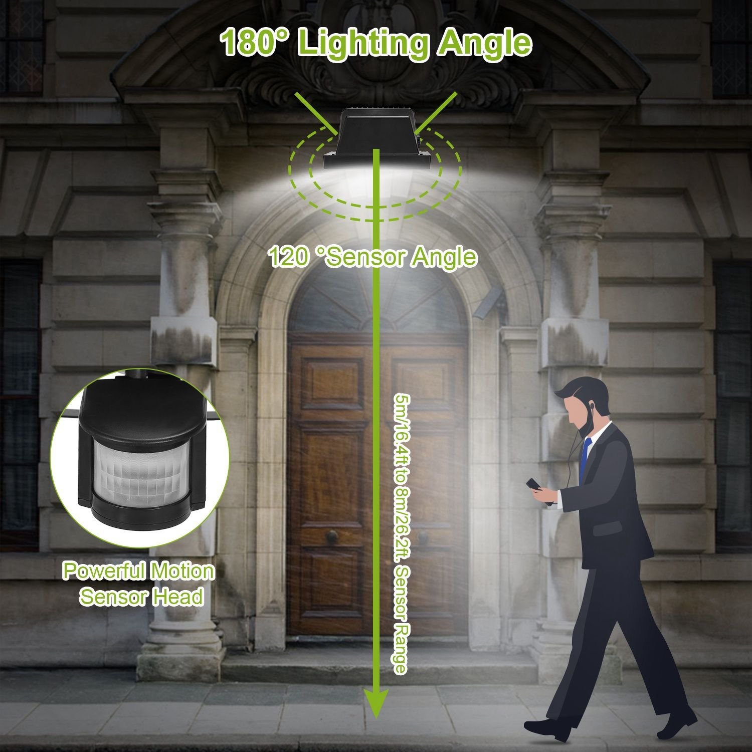 **Light Sensor & Motion Sensor Supported*:The inbuilt light sensor can sense the ambient brightness from 5-20 Lux,the larger the lux value,the brighter ambient that our wall light will auto on when motions are detected. Built-in PIR motion sensor of our solar lights features 26.2ft maximum detection distance and almost 120°detection angle. This duration can range from 8S to 2Min.